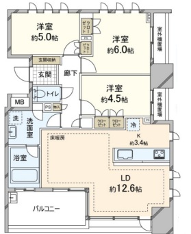 | 設備・条件 | バストイレ別 追炊き機能 浴室乾燥機 独立洗面台 室内洗濯機置き場 温水洗浄便座 システムキッチン ガスコンロ3口 グリル エアコン 床暖房 クローゼット シューズボックス オートロック モニター付きインターホン エレベーター |