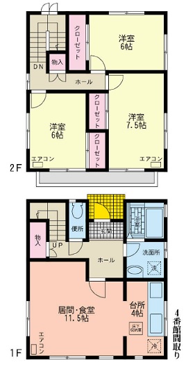 | 設備・条件 | バストイレ別 独立洗面台 室内洗濯機置き場 クローゼット エアコン バルコニー 床下収納 2面採光 CATV 都市ガス |