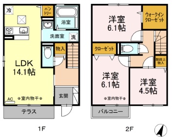 | 設備・条件 | バストイレ別 追い焚き機能 浴室乾燥機 独立洗面台 室内洗濯機置き場 システムキッチン コンロ3口 温水洗浄便座 エアコン シャッター モニター付きインターホン セキュリティシステム ウォークインクローゼット クローゼット 下駄箱 床下収納 バルコニー テラス |
